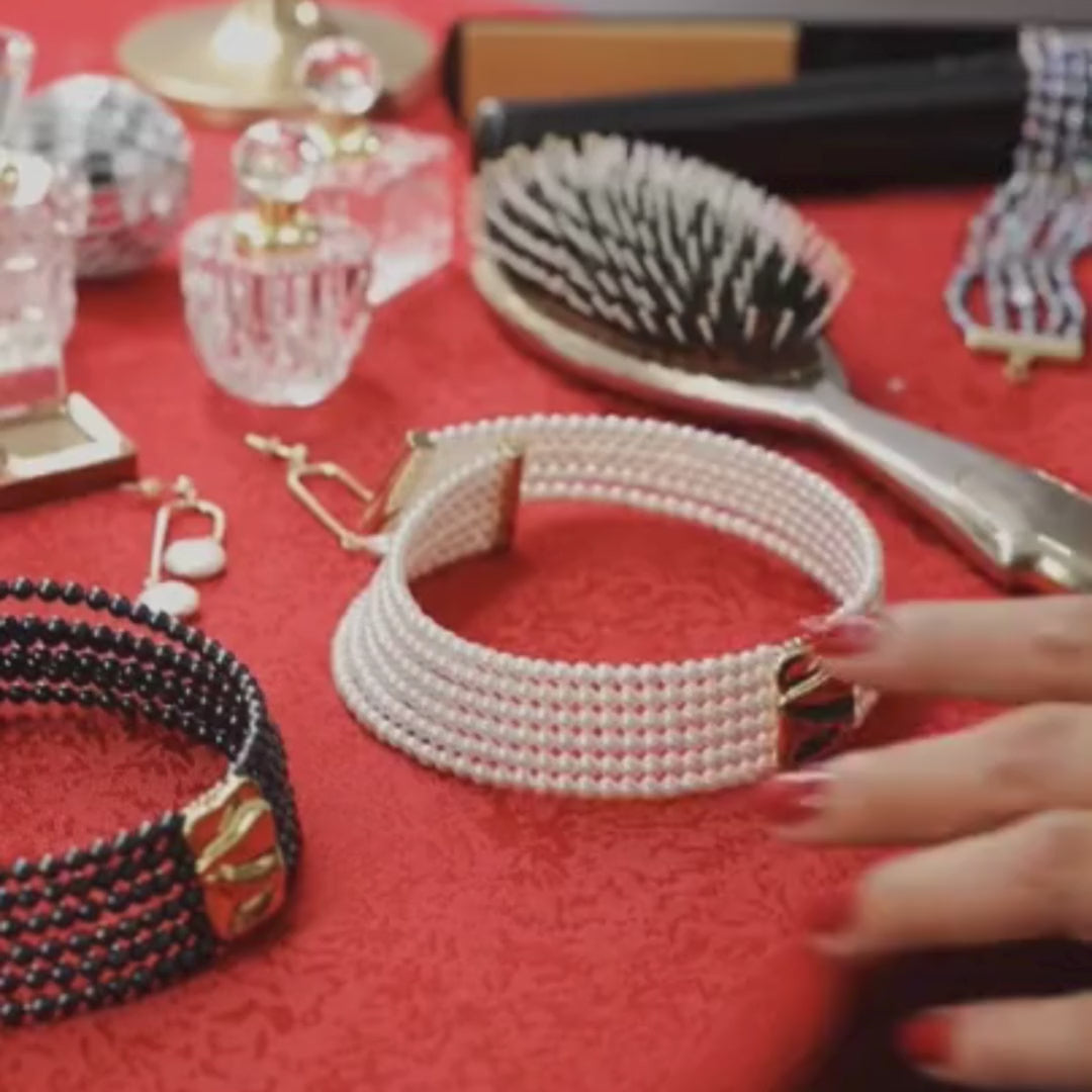 The Mallorca Choker is made of pearls on adjustable wiring that can expand to fit a variety of neck sizes. This statement-piece choker is meant to make you feel glamorous. We promise you'll be standing out from the crowd in this unique yet timeless style.