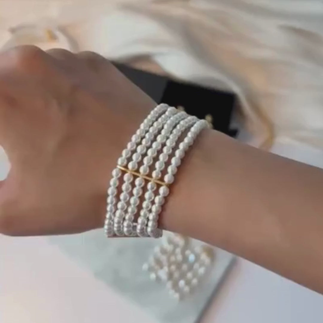 A kin to our Martini Choker, strings of pearls cuffed together by slim gold bars makes for the perfect bold accessory. An updated bold pearl look that will definitely draw attention and compliments.