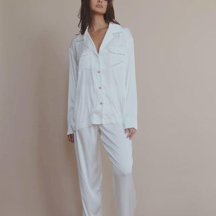 Our Matching Co-ord sets are designed with the mentality of what you would pack for a last-minute trip or for a night out: A silky button-down top and pants that can take you from the runway at Charles de Gaulle Airport to the corner booth of Balthazar.